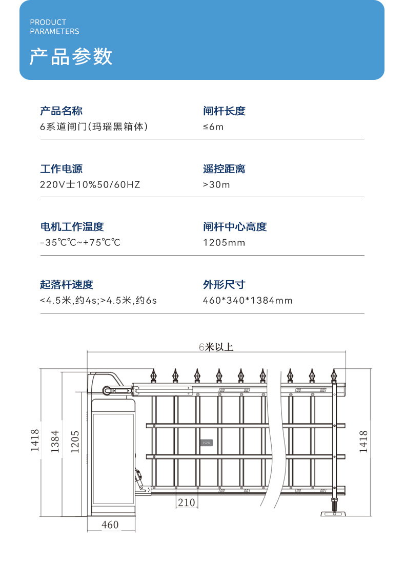 高度1.42米(mǐ),長度(dù)可達(dá)6米,起杆速度4~6s