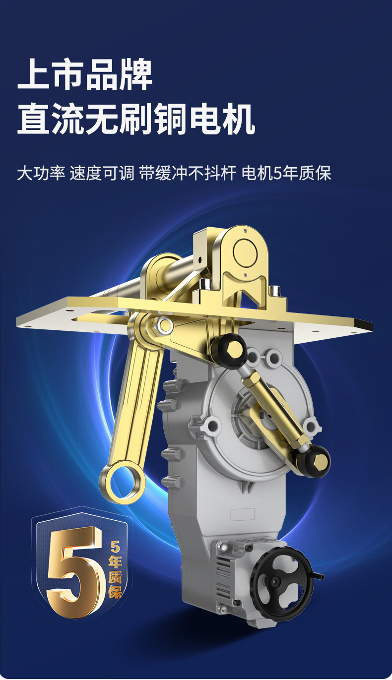 采用直(zhí)流變頻機芯,一體化設計、霍爾數字限位、二級減速裝置