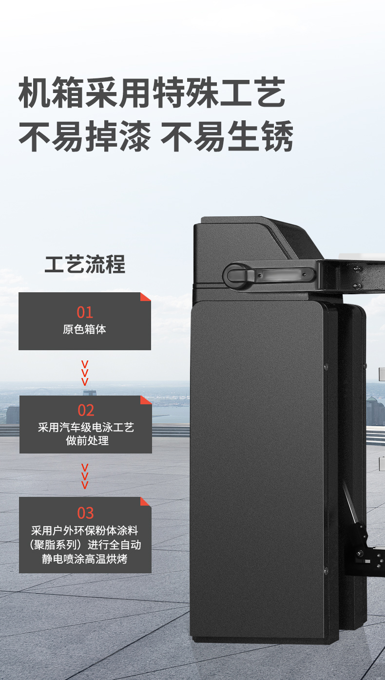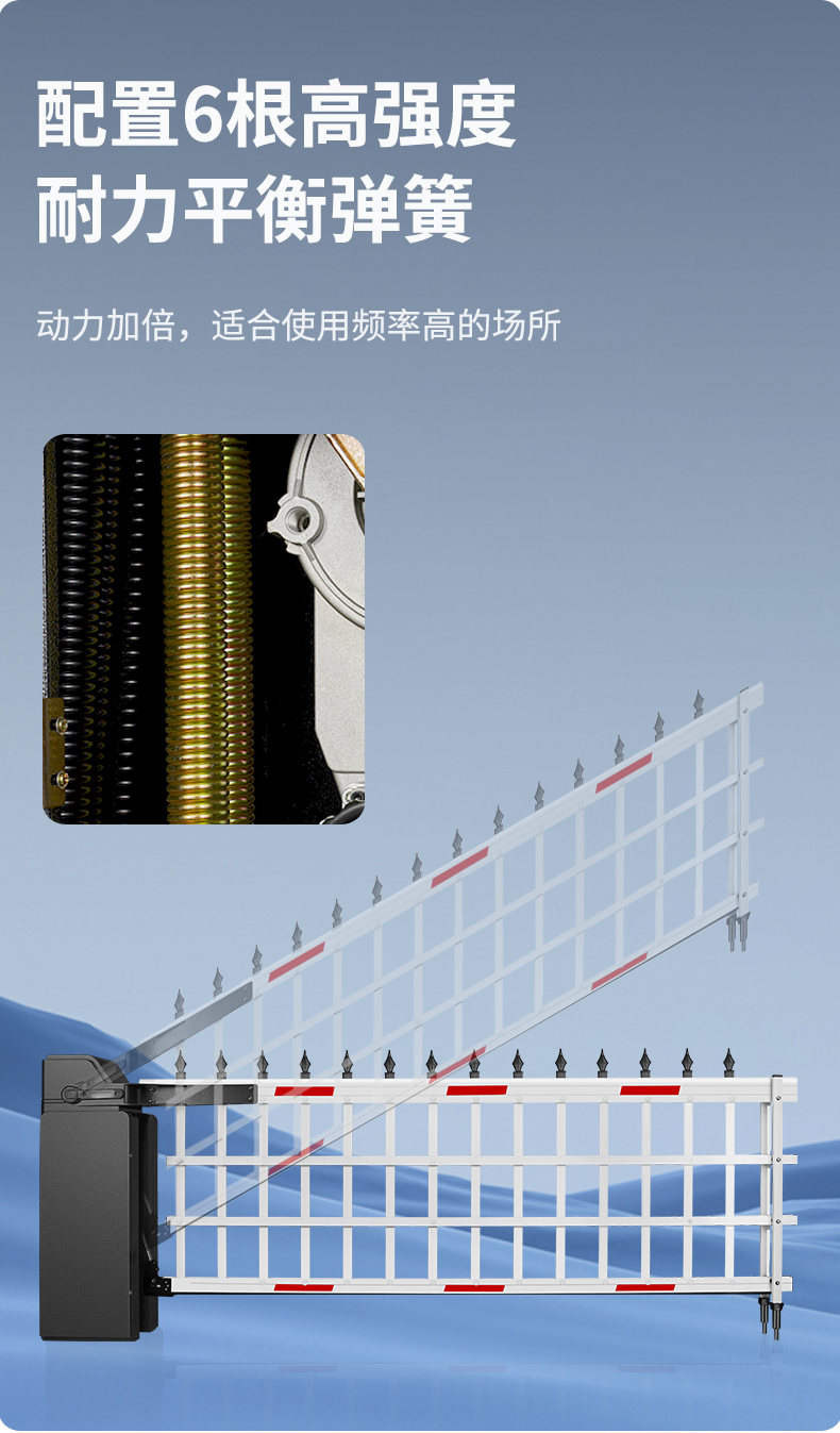 采用緩衝(chōng)腳設(shè)計,減小落杆衝擊力,保護道閘機芯,降低噪音