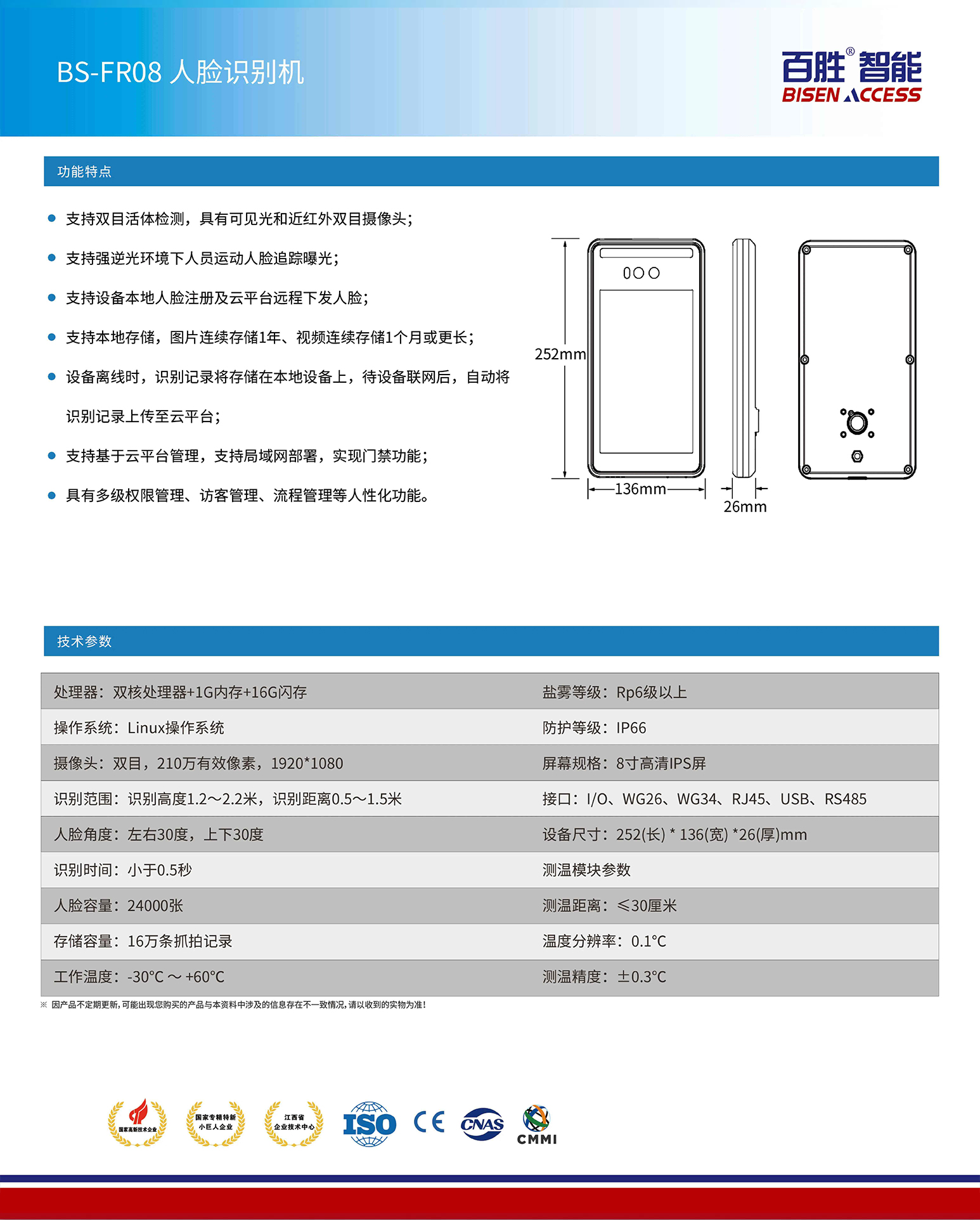 ● 支持基於雲(yún)平台管理,支持局域網部署(shǔ),實現門禁功能;