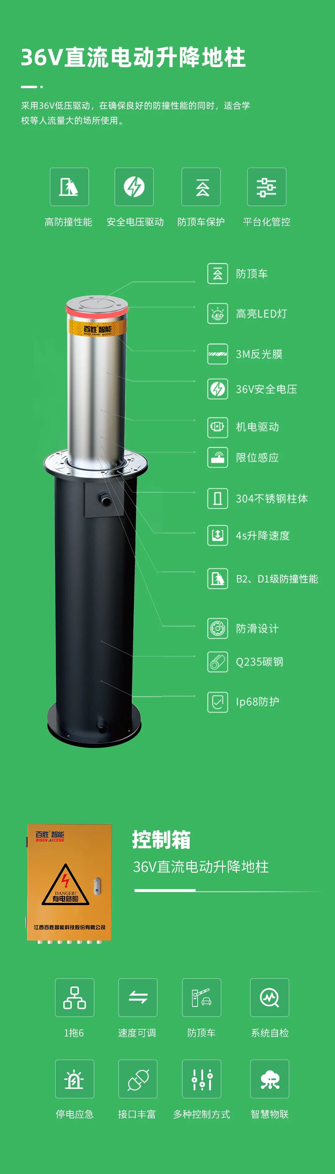校園安全守(shǒu)護神 欧美精品蜜桃69桔色36V直流(liú)電動升降地柱